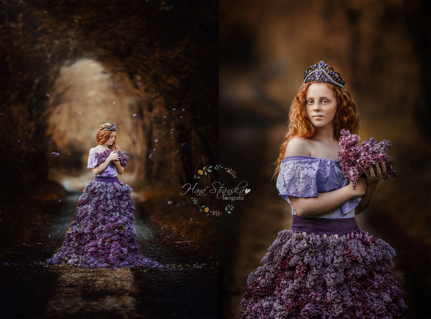 Měla jsem hned ze startu jasno o jednom obrazu, zbytek přicházel postupně. Věděla jsem, že chci, aby to bylo pohádkové, snové. Jednotlivá dítka do obrazů mi pak pomáhali vybrat i kolegové. Jsem totiž nerozhodná, a na jeden obraz jsem vždy měla dva různé adepty. Bohužel se mi i stalo, že jedna maminka s dítkem na smluvené místo vůbec nedorazila, neomluvila se. Ale to byla opravdu jen jedna špatná zkušenost. Samotné focení odstartovalo v dubnu a o prázdninách šel kalendář do tisku. Takže jeho tvorba trvala čtyři měsíce. Do akce se zapojila má kamarádka, vizážistka Petra Grezlová, která mi pomáhala se sběrem šeříků a následným tvořením sukně přímo v terénu. Také pomáhala při focení se zvířátky – liškou, výrem, sovou pálenou. Zvířátka na focení pocházela ze záchranné stanice z Litovle. Tohle focení bylo jedno z těch náročnějších, protože nás chtěli sežrat komáři, a to doslova. Pak se Petra podílela i na steampunkovém focení, kdy s dýmovnicí pobíhala v ranních hodinách po Dolní oblasti Vítkovic v Ostravě.